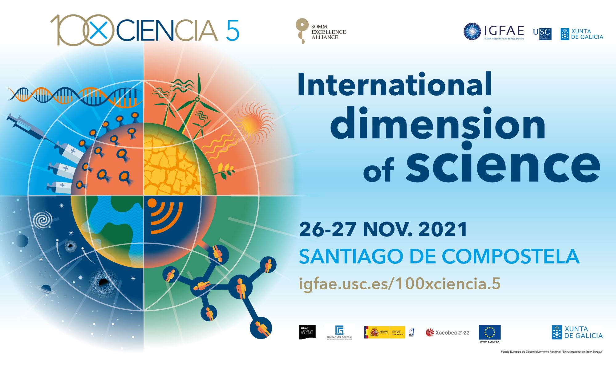 El gran encuentro científico de la alianza SOMMa, la red de Centros Severo Ochoa – Unidades María de Maeztu, “100xCiencia.5: International dimension of science” se celebrará el 26 y 27 de noviembre en Santiago de Compostela, en la Cidade da Cultura. Se trata de un foro donde investigadores y directivos de los 57 centros españoles con esta certificación de excelencia compartirán con periodistas y comunicadores especializados un espacio para reflexionar juntos sobre la necesidad de la cooperación internacional para el progreso científico y social de la humanidad en el siglo XXI. El Instituto Galego de Física de Altas Enerxías (IGFAE), centro mixto de la Universidade de Santiago (USC) y la Xunta de Galicia, y único centro con esta distinción en esta comunidad autónoma, ejerce de institución anfitriona en la quinta edición de la serie 100xCiencia. El congreso podrá seguirse en directo a través del canal de Youtube del IGFAE.