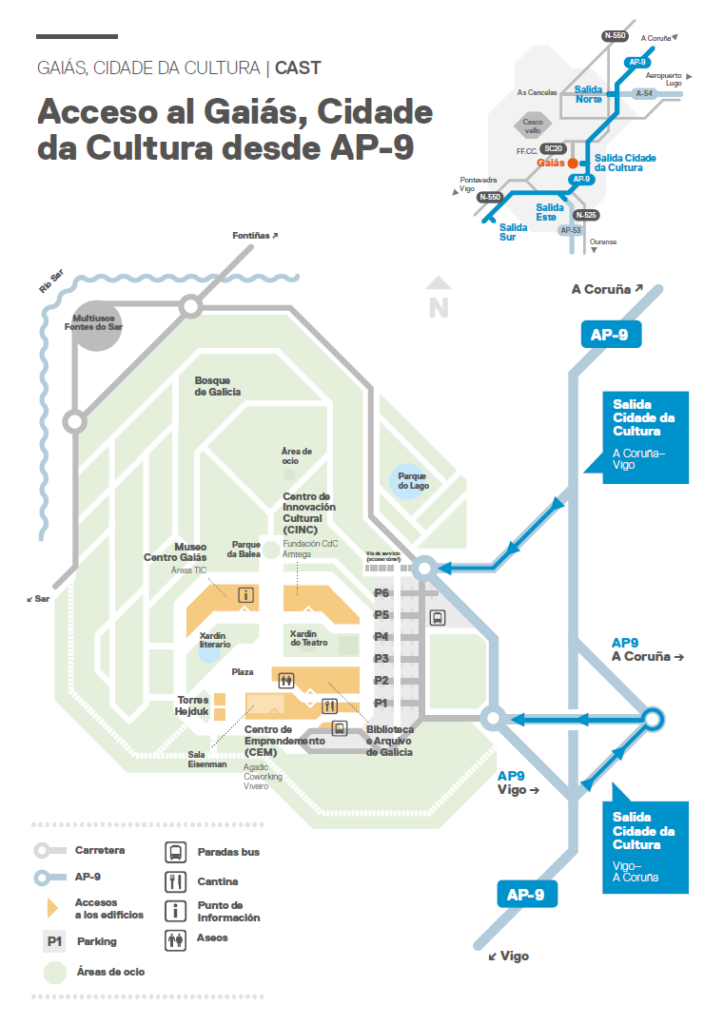 100xCiencia 5 will be held at the Cidade da Cultura de Galicia, in Santiago de Compostela, in a new auditorium, Edificio Fontán, with capacity for 750 people. The paralel sessions will be held at Edificio CNIC (Centro de Innovación Cultural), in front of the auditorium.