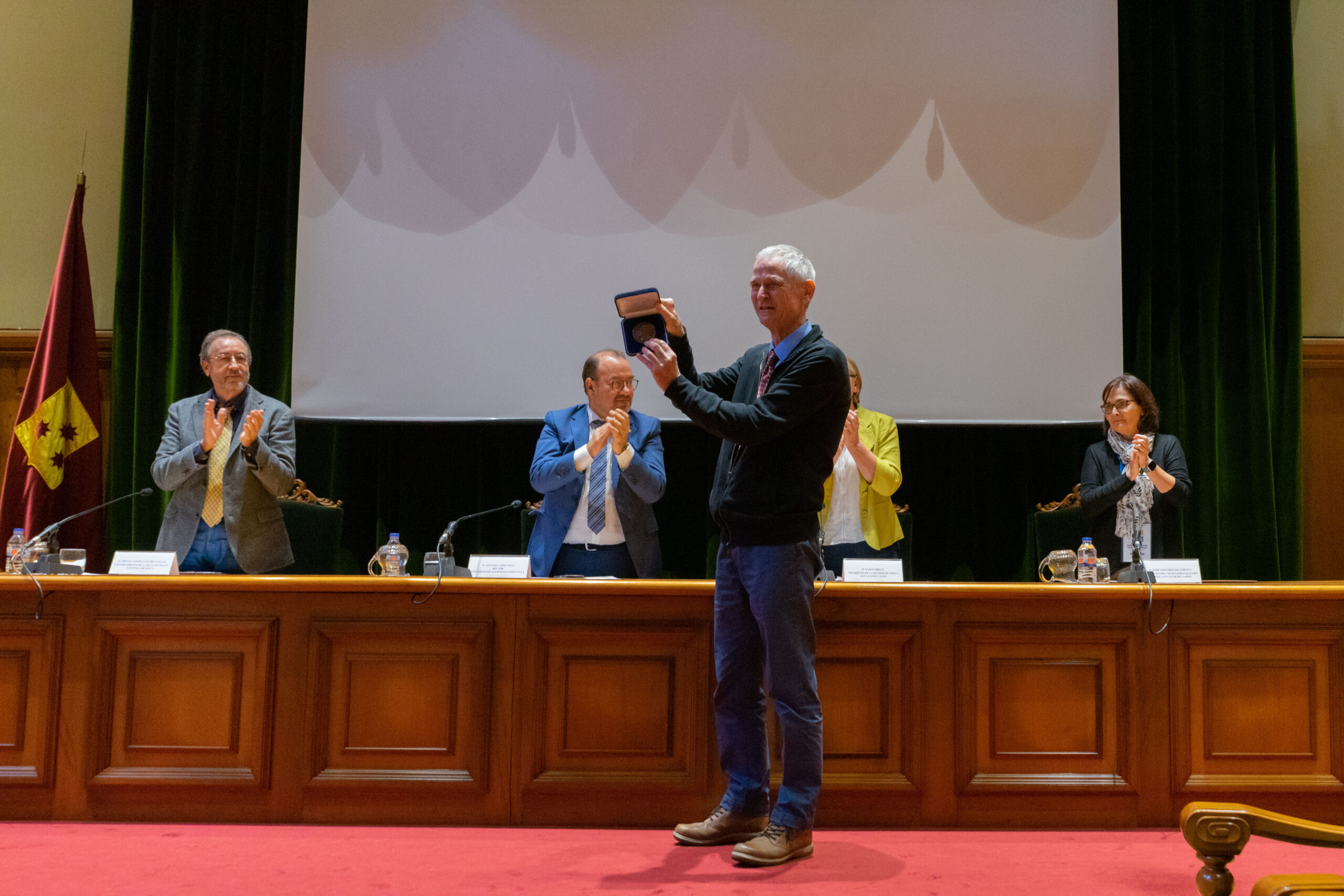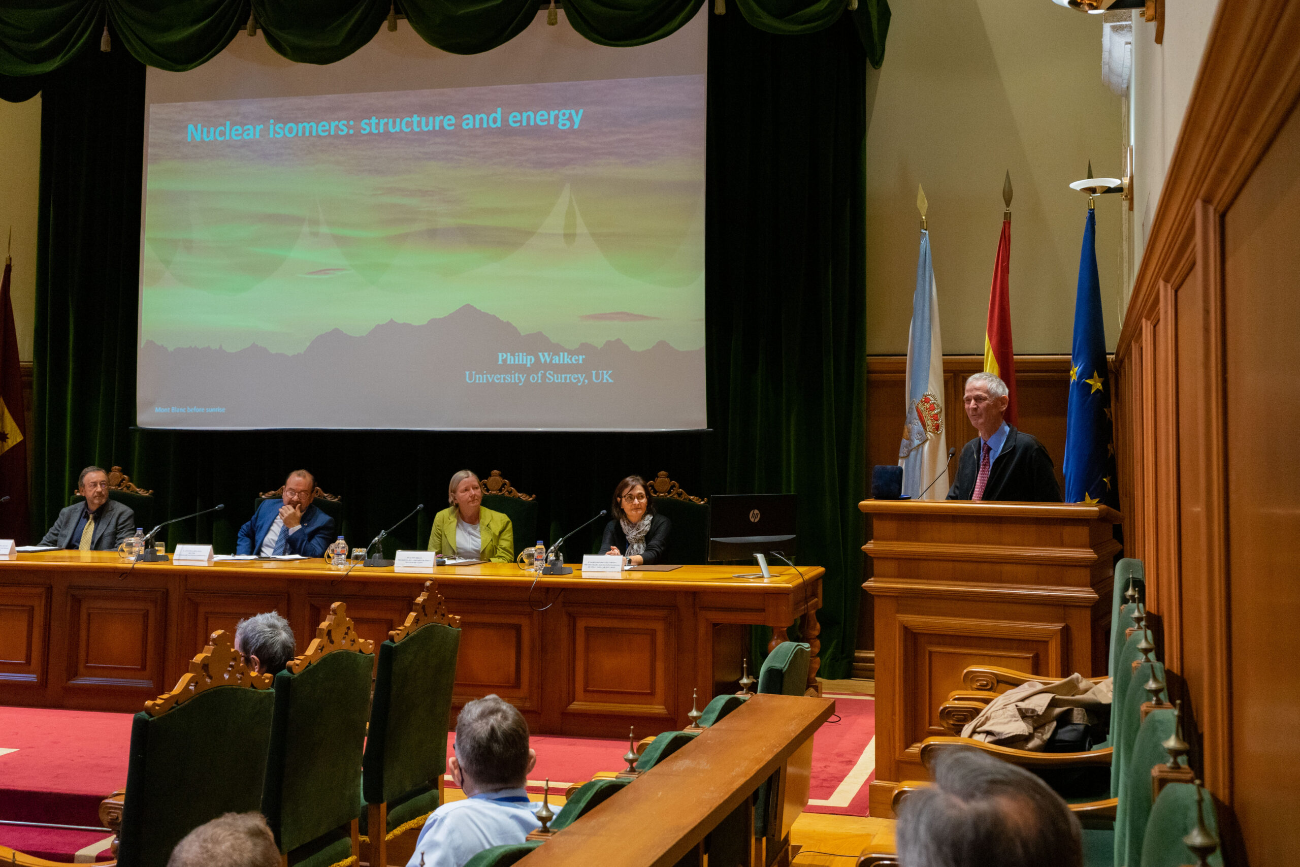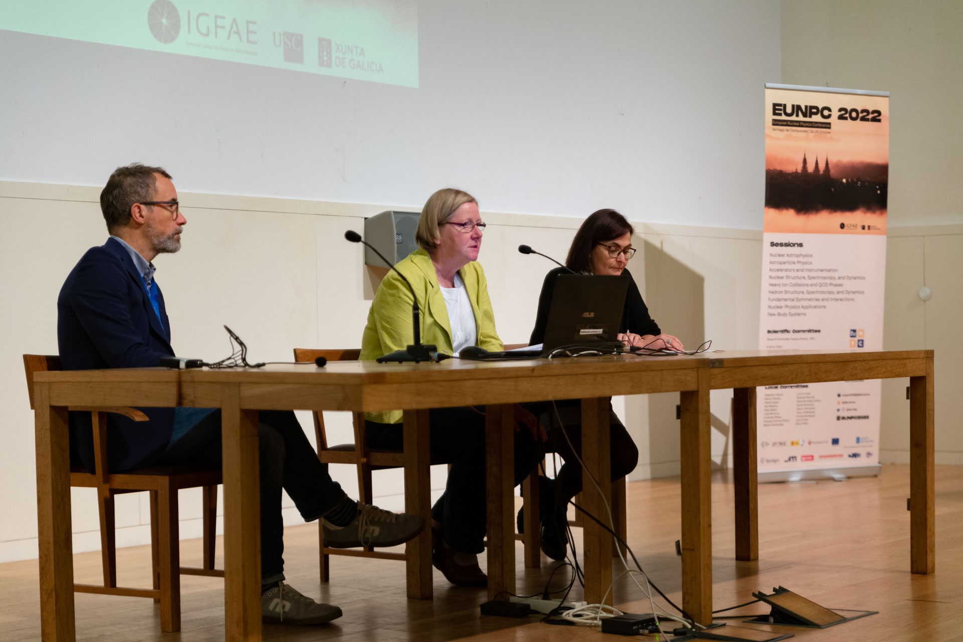 O acto inaugural estivo presidido pola presidenta do comité organizador e investigadora do IGFAE Dolores Cortina, o director do IGFAE Carlos Salgado e a presidenta de la División de Física Nuclear da Sociedade Europea de Física Alison Bruce.