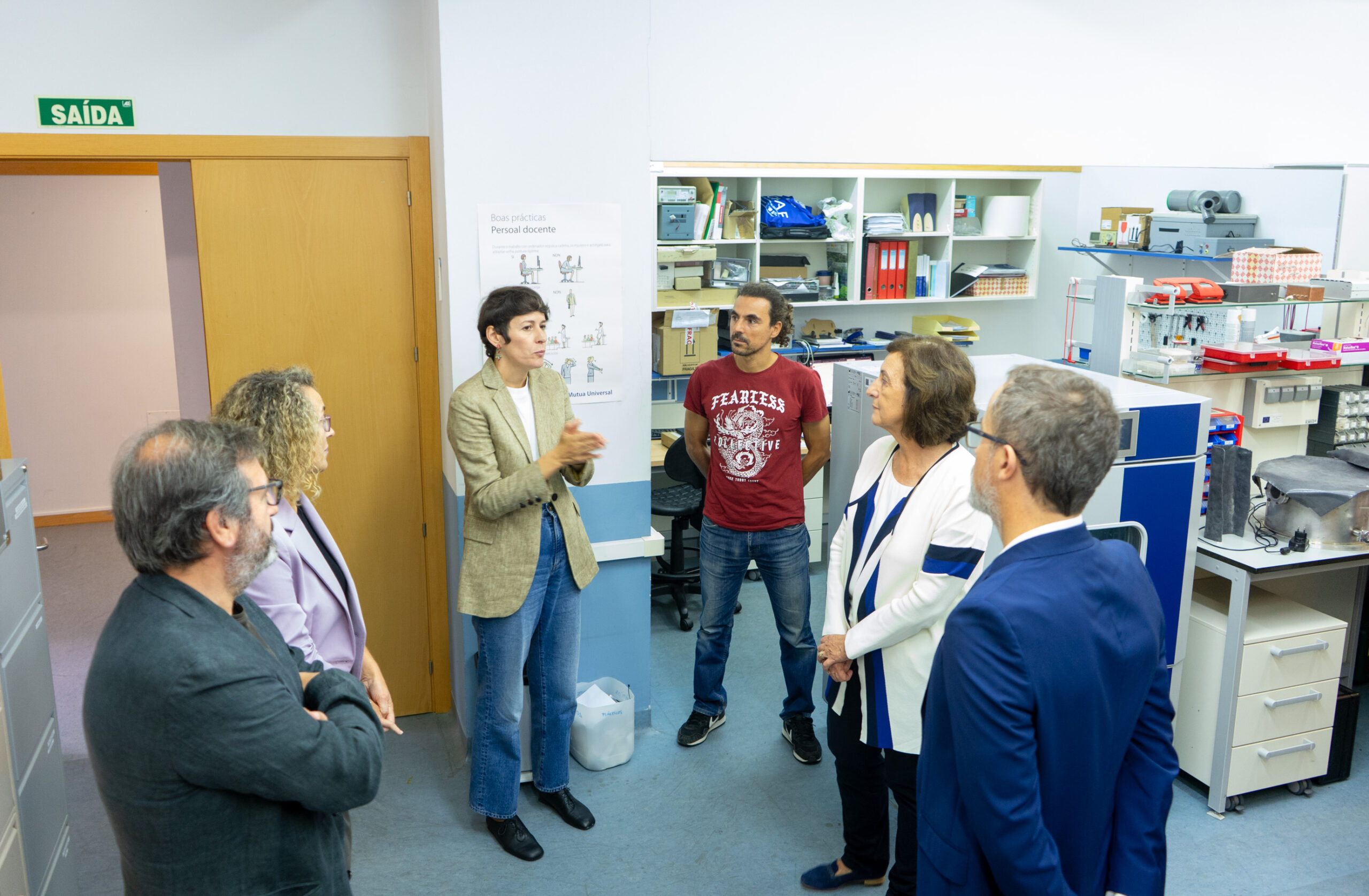 Despois de manter unha reunión coa dirección do centro e a USC, a visita continuou cun percorrido polas instalacións do IGFAE, coñecendo o traballo do persoal investigador.