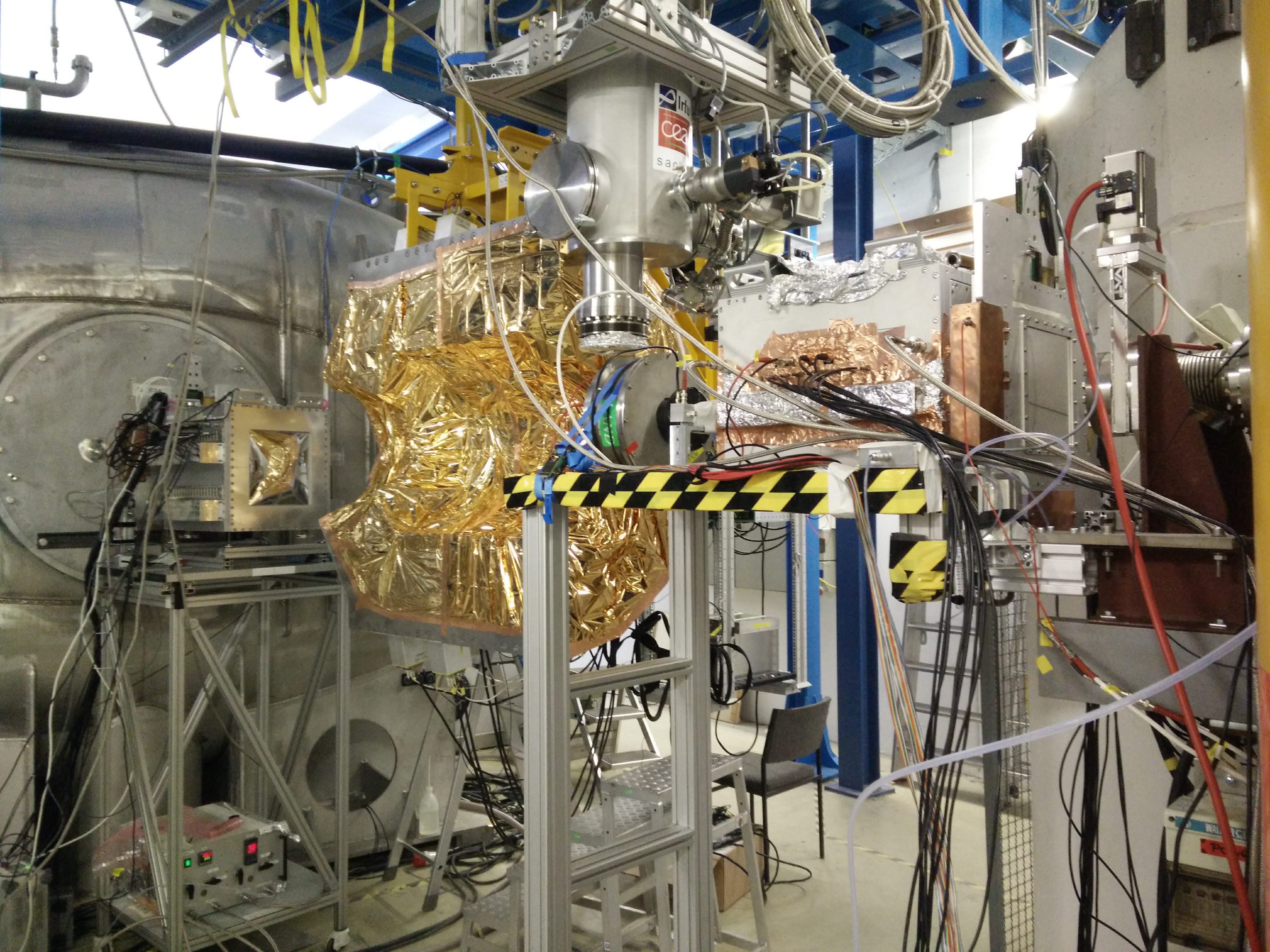 - Beam line view, from left to right: ionization chamber, CALIFA, multi-wire cameras, GLAD.