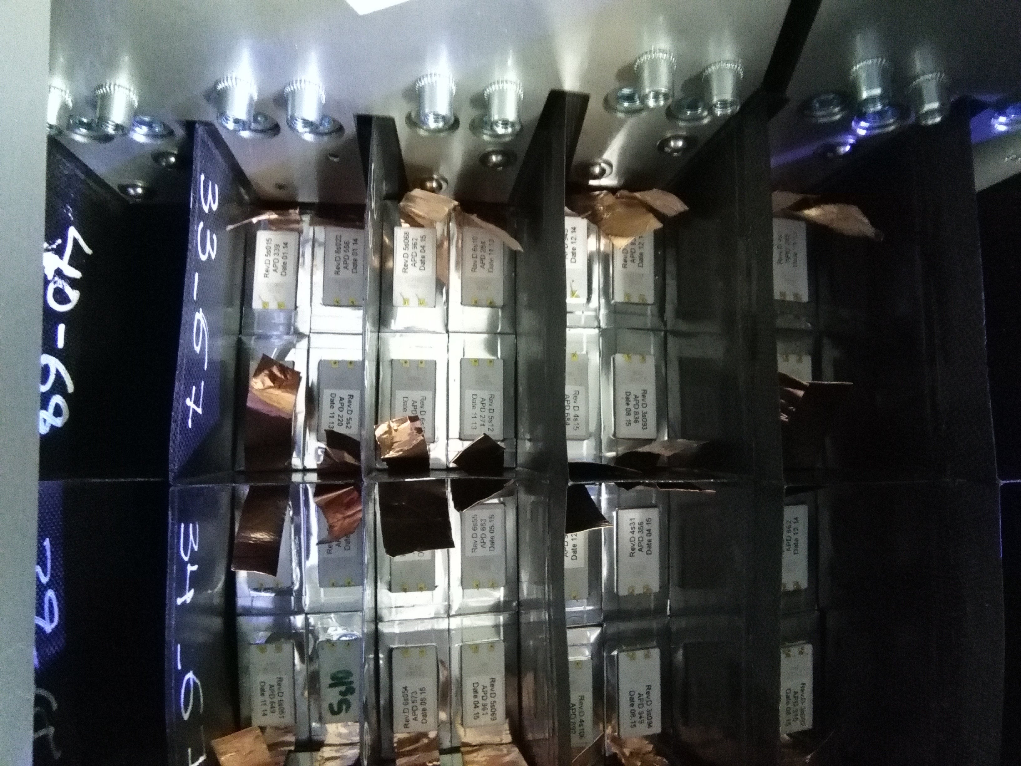 - View of a sector, scintillation crystals and Avalanche Photodiodes